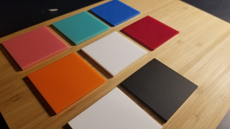 I met with my plastic supplier yesterday to source additional panel colors. Here are swatches of some of them: